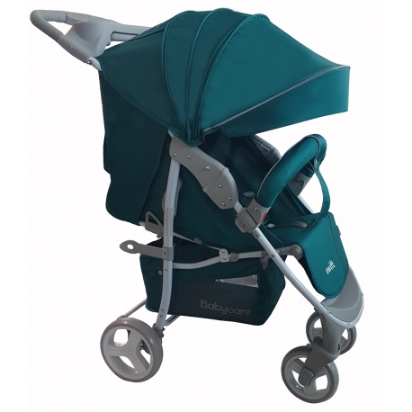 Tvirtas aliuminio rėmas su patogiu lankstymo mechanizmu. Vežimėlis ypatingai stabilus.